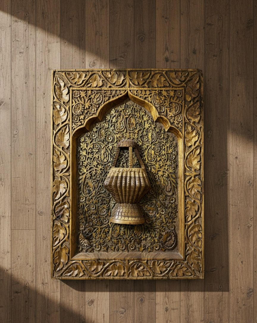 Beautifully hand-carved wooden wall panel featuring traditional Kashmiri motifs. Adds an elegant, cultural touch to any living space